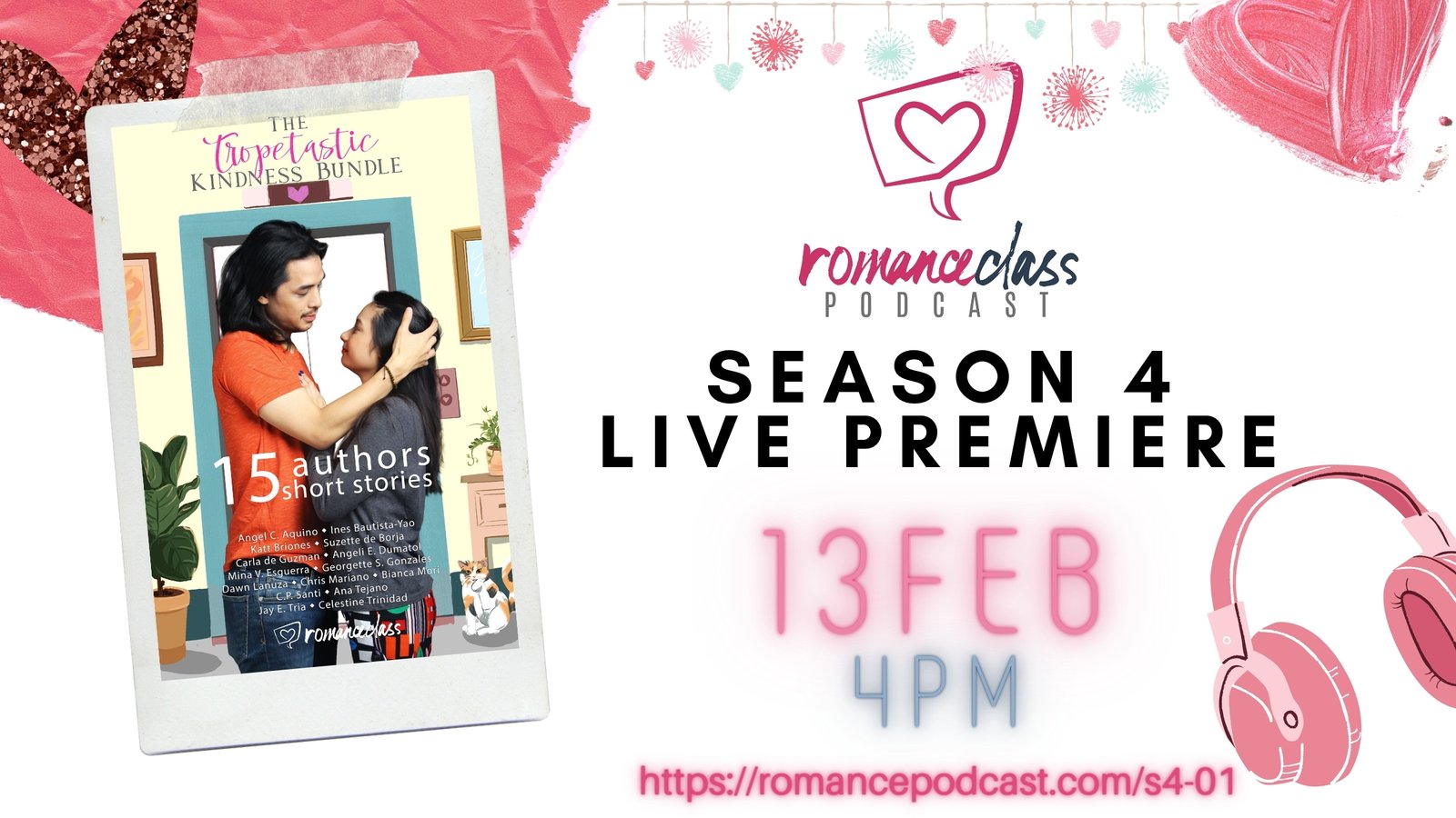 It’s the #RomanceClass Podcast Season 4 premiere! We’re launching a new anthology of romance short stories for charity— The Tropetastic Kindness Bundle. Fifteen new, never before seen short stories by fifteen #RomanceClass Authors. Join us on February 13, 2021 at 4pm Manila Time.