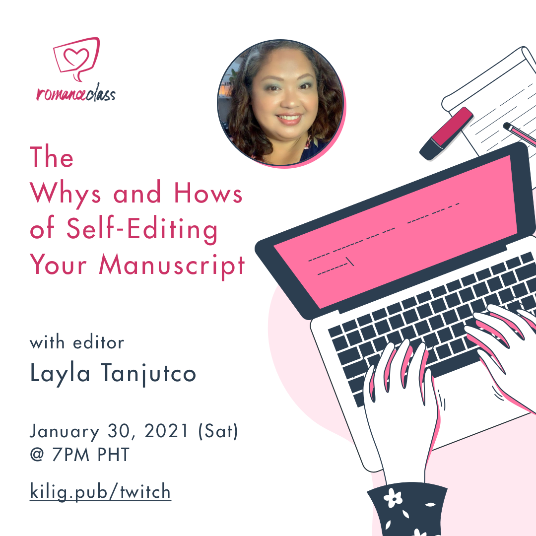 #RomanceClass editor and author Layla Tanjutco will be talking about The Whys & Hows of Self-Editing Your Manuscript this Saturday, January 30 at 7PM PHT! Leave your questions for Layla on the tweet linked below and join the discussion on kilig.pub/twitch
